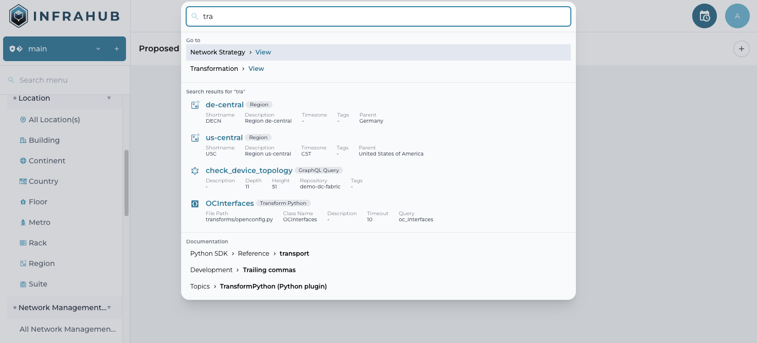 The search bar has been enhanced to return more information. In addition to the objects, it's now possible to search the documentation and to navigate directly to other pages in the frontend. The search results view has also been redesigned to make it faster and more accessible.